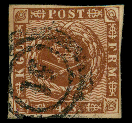 5901 O 7a image1858, Royal Emblems, 4sk yellow brown (Scott 7a), single, Numerical cancel 51., Very Fine.