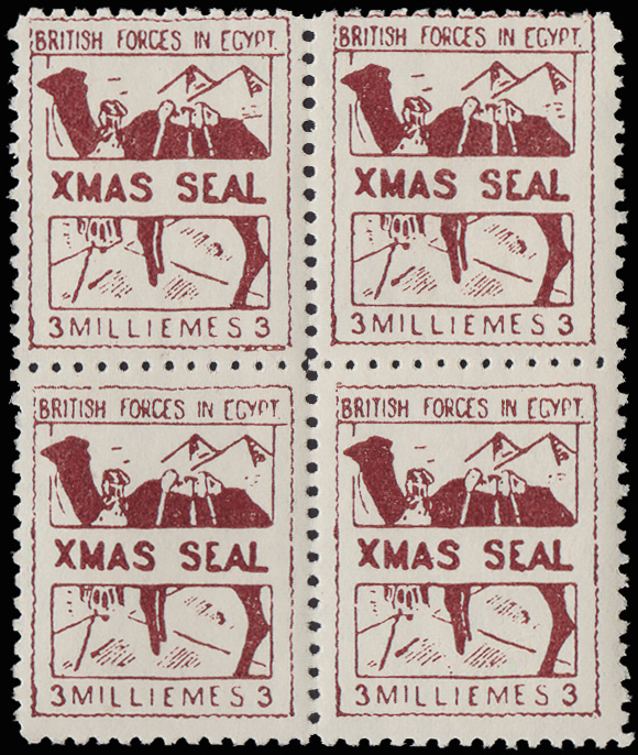 5941 ogbl M4 image1933, Camel Christmas Seal, 3m brown lake (Scott M4), block of 4, o.g., Fine to Very Fine.