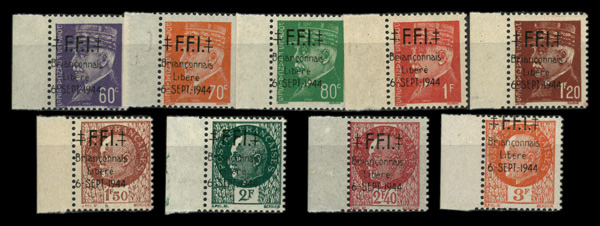 5960 nh   image1944, Briancon (Hautes-Alpes) complete, complete set of marginal singles, o.g., never hinged, Fine to Very Fine.