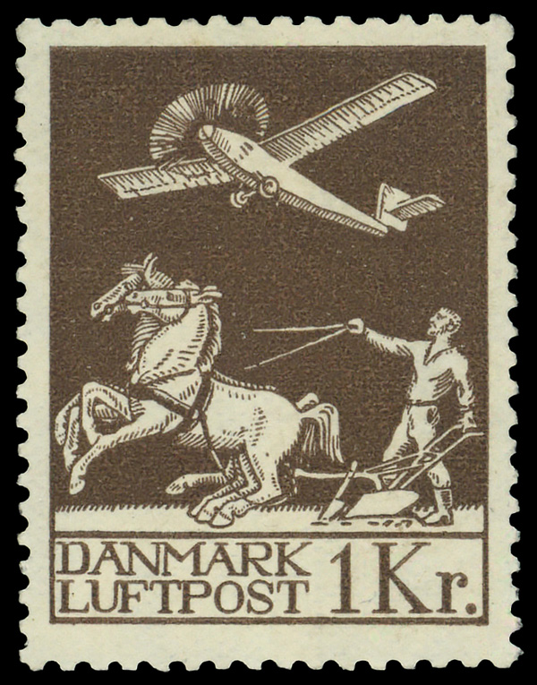 5931 nh C5 imageAirmail, 1929, First Issue, 1kr chocolate (Scott C5), single, o.g., never hinged, Fine to Very Fine.
