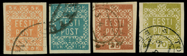 5948 O 1-4 image1918, 5k - 70p First Issue complete (Scott 1-4), complete set of singles, Fine to Very Fine.
