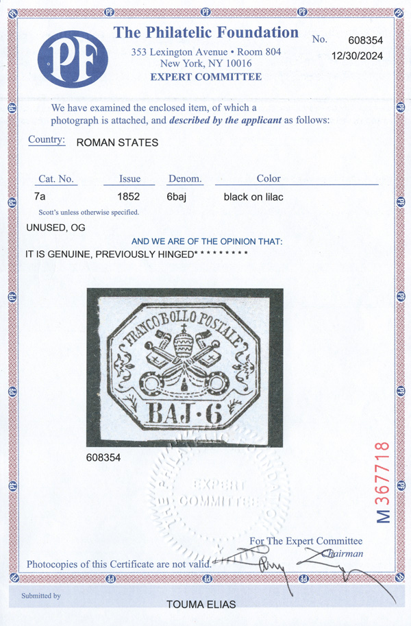 6032 og 13 image1859 Provisional Govt. 10c brown (Scott 13), o.g., lightly hinged, uncommonly fresh with large margins, Very Fine to Extremely Fine, signed A. Brun, with a 2024 P.F. certificate.