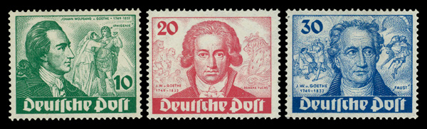 6009 og 9N61-9N63 image1949 Goethe complete (Scott 9N61-9N63), complete set of singles, o.g., hinged, Fine to Very Fine.