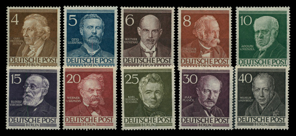 6010 nh 9N84-9N93 image1952-53, Famous Men Complete (Scott 9N84-9N93), complete set of singles, o.g., never hinged, Fine to Very Fine.