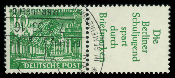6001 O   image1949, Building 10pf Yellow green, booklet single with tab, Fine to Very Fine.