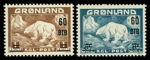 6026 nh 39-40 image1956, 60öre overprints complete (Scott 39-40), complete set of singles, o.g., never hinged, Fine to Very Fine.