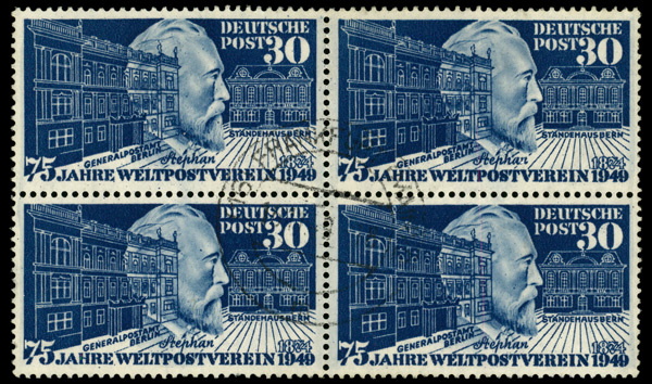 6014 Obl 669 image1949, 30pf U.P.U. (Scott 669), block of 4, Extremely Fine.