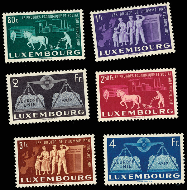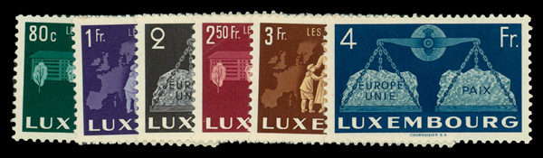 6072 og 272-277 image1951, United Europe complete (Scott 272-277), set of 6, complete set of singles, o.g., hinged, Fine to Very Fine.