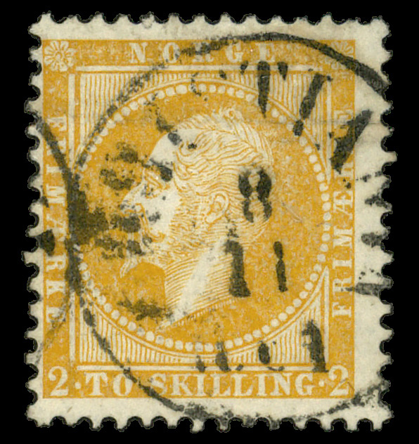6085 O 2 image1857, 2sk yellow King Oscar I (Scott 2), single, Fine, horitzonal light crease.