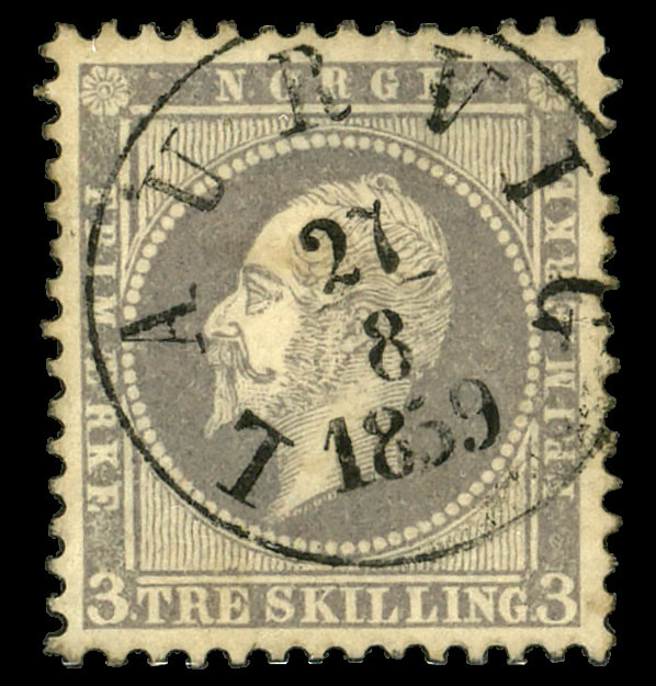 6086 O 3 image1857, 3sk lilac King Oscar I (Scott 3), single, Extremely Fine.