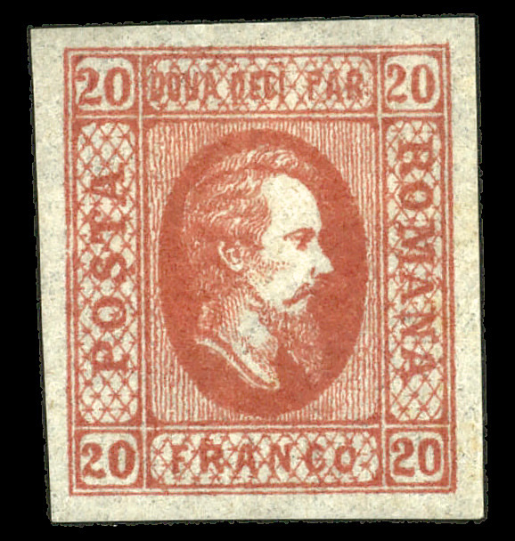6107 og 36 image1868, Prince Carol, 18b scarlet (Scott 36), single, o.g., hinge remnant, Extremely Fine, signed A. Diena.