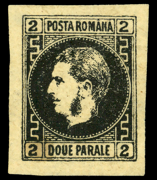 6103 og 29a image1866, Prince Carol, 2pa black on yellow, thick paper (Scott 29a), single, o.g., lightly hinged, Extremely Fine.