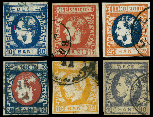 6110 O 38, 40-42, 44-45 image1869-72, 10b-50b Prince Carol (Scott 38, 40-42, 44-45), selection of 6, Fine to Very Fine.