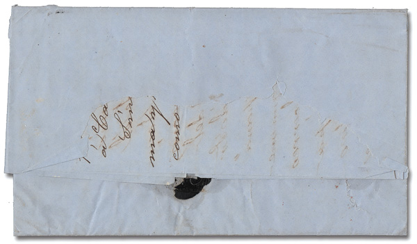 6156 cover 67 image1865, 2cu rose (Scott 67), two 4-margin singles (one close at bottom) tied by a cartwheel "43" on an 1865 folded letter to Mexico City via London; faint Apr 16 Santander c.d.s., red Apr 29 "London/Paid" c.d.s. and a handstamped "4", Very Fine.