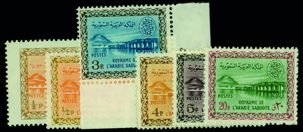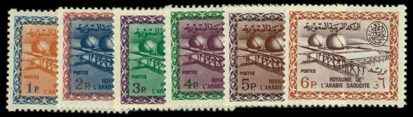 6126 nh 258-263 image1963, Wadi Hanifa Dam, Watermarked, King Saud Cartouche, ½pi-20pi complete (Scott 258-263), complete set of singles, o.g., never hinged, Fine to Very Fine.