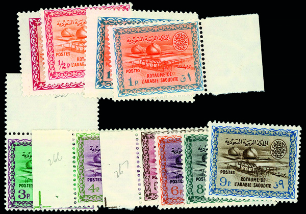 6127 nh/og 264-273 image1963, Gas-Oil Plant, Watermarked, King Saud Cartouche, ½pi-9pi complete (Scott 264-273), complete set of singles, o.g., all never hinged except 264 and 271 which are lightly hinged, Fine to Very Fine.