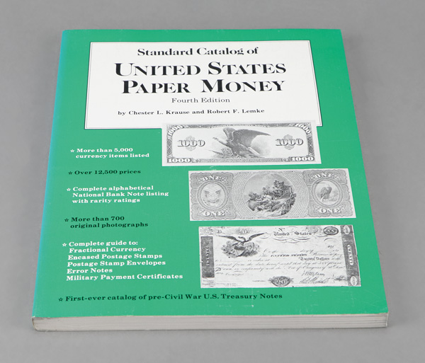 6244 L krause & lemke us paper money 4th imageKrause, Chester L. & Robert F. Lemke, Standard Catalog of United States Paper Money (4th ed.), 1985, 192 pages, paperback. Shipping charges apply - weight 1.2 lbs. (Image) Suggested Bid $2