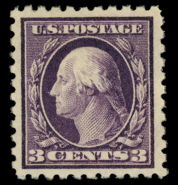 5158 og 464 image1916, 3¢ violet, type I, unwatermarked, perf. 10 (Scott 464), o.g., very lightly hinged (gum creases), Very Fine to Extremely Fine.