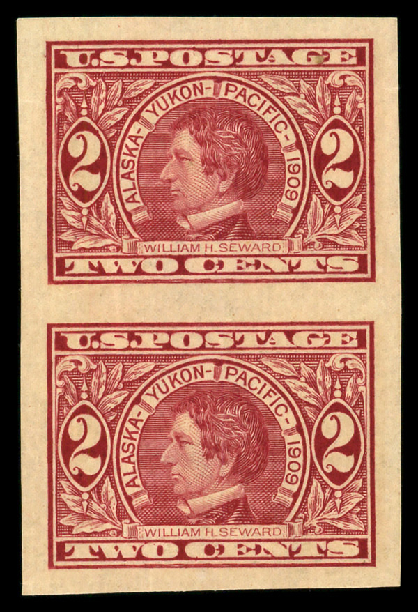 5133 nh 371 image1909, 2¢ Alaska-Yukon, imperf. (Scott 371), vertical pair, o.g., never hinged, Extremely Fine to Superb.