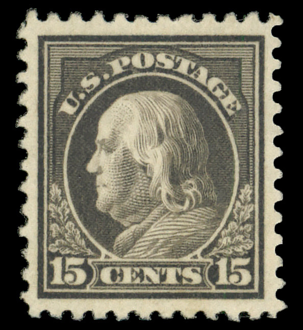 5184 og 514 image1917, 15¢ gray, perf. 11 (Scott 514), o.g., lightly hinged, Extremely Fine.