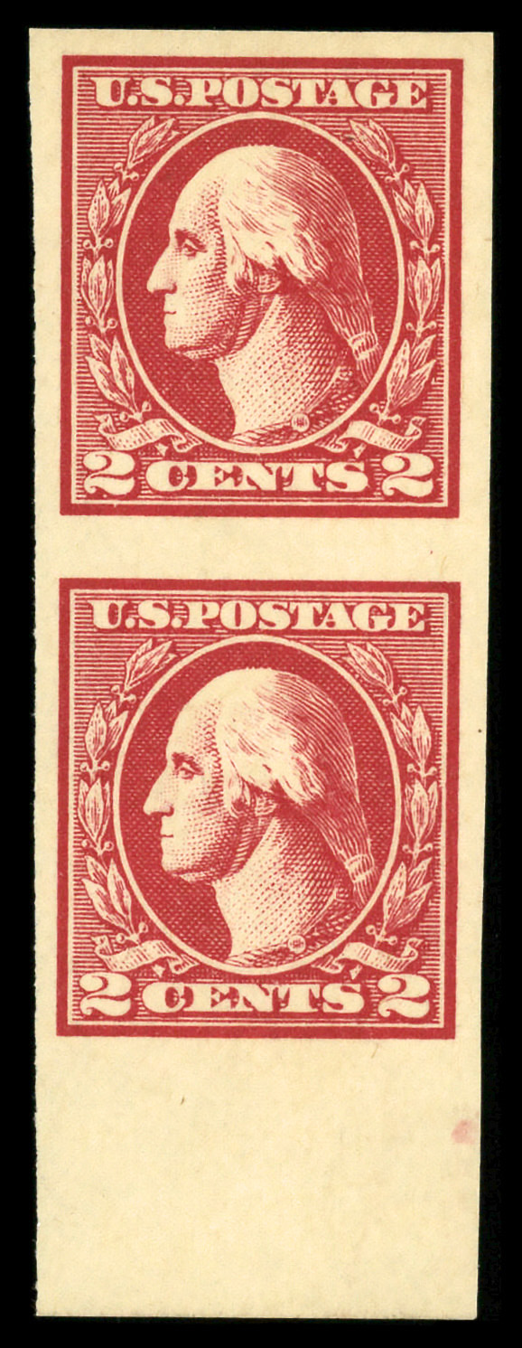 5200 nh 534A image1918, 2¢ carmine, type VI, offset printing, imperf. (Scott 534A), bottom margin vertical pair, o.g., never hinged, Very Fine.
