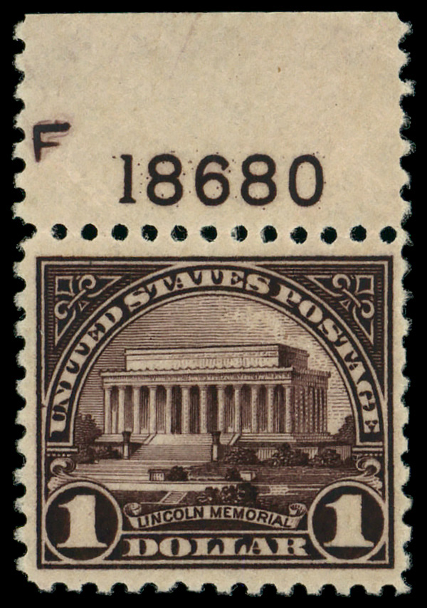 5237 nh 571 image1923, $1 Lincoln Memorial (Scott 571), plate number single, o.g., never hinged, Very Fine.