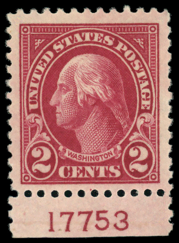5215 nh 554 image1923, 2¢ Washington (Scott 554), plate number single, o.g., never hinged, Very Fine to Extremely Fine. (Image) Suggested Bid $64
