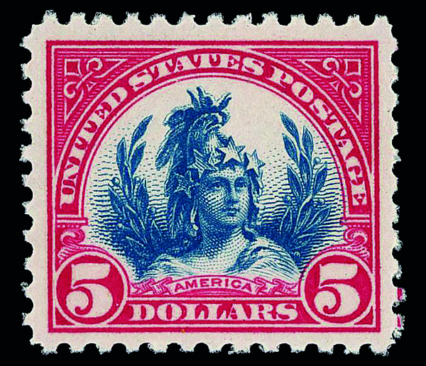 5239 nh 573 image1923, $5 America (Scott 573), o.g., never hinged, Very Fine to Extremely Fine, with 2020 P.S.A.G. certificate graded XF-SUP 95.