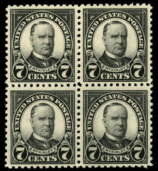 5222 nhbl 559 image1923, 7¢ McKinley (Scott 559), block of 4, o.g., never hinged, Very Fine to Extremely Fine.