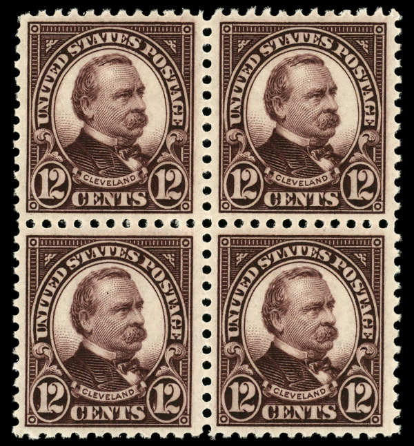 5228 nhbl 564 image1923, 12¢ Grover Cleveland (Scott 564), block of 4, o.g., never hinged, Extremely Fine.