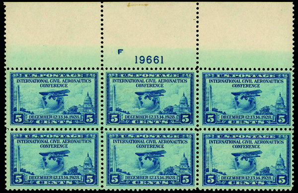 5279 nhbl 649-650 image1928, Civil Aeronautics complete (Scott 649-650), plate blocks of 6, o.g., never hinged, Very Fine to Extremely Fine.