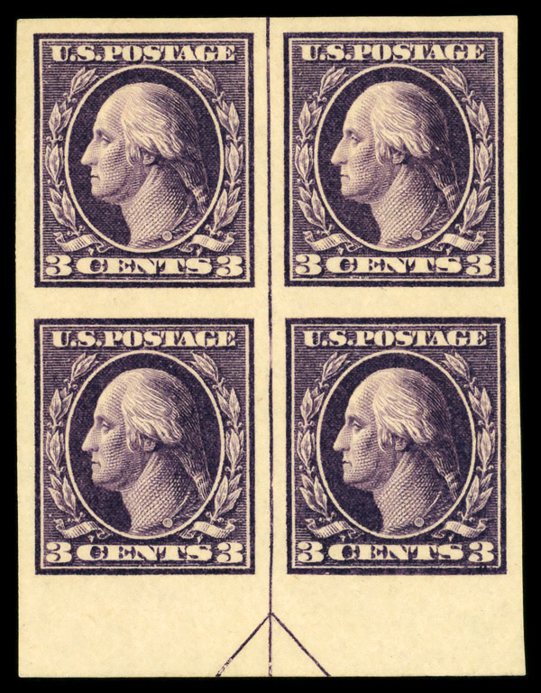 6601 ogbl 483 image1917, 3¢ violet, type I, unwatermarked, imperf. (Scott 483), centerline block of 4, o.g., lightly hinged, Superb.