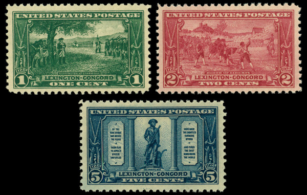 6688 nh 617-619 image1925, Lexington-Concord complete (Scott 617-619), set of 3, o.g., never hinged, Very Fine to Extremely Fine.