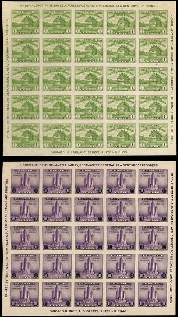 6736 ng 730-731 image1933, A.P.S. souvenir sheets complete (Scott 730-731), without gum as issued, Extremely Fine.
