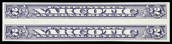 6831 nh RJA80a imageNarcotic Tax, 1963, 2¢ violet, imperf (Scott RJA80a), vertical pair, o.g., never hinged, Very Fine.