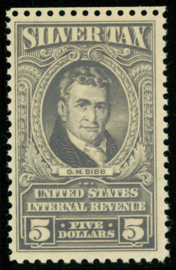 6829 nh RG124 imageSilver Tax, 1944, $5 gray (Scott RG124), o.g., never hinged, Fine to Very Fine.