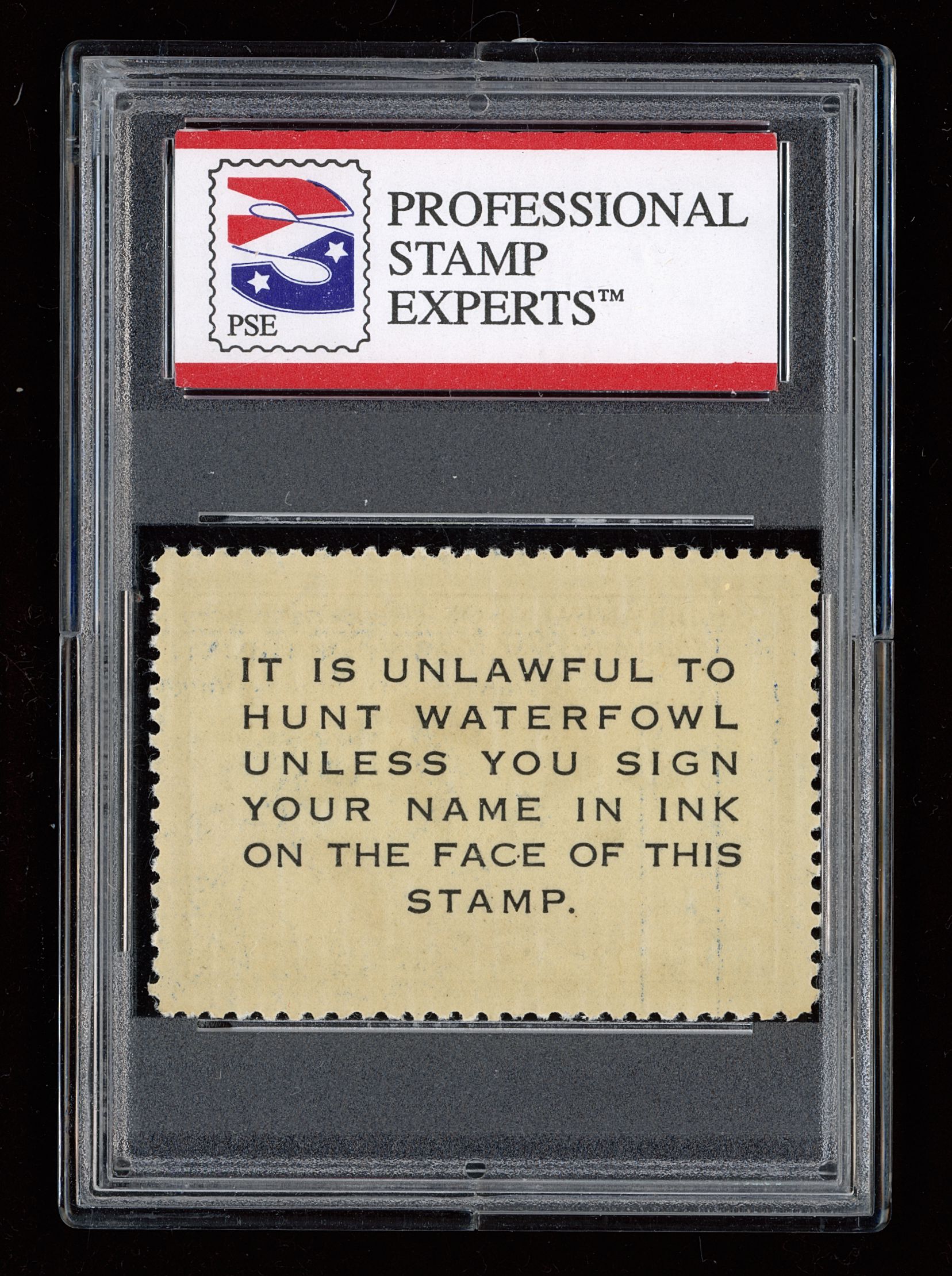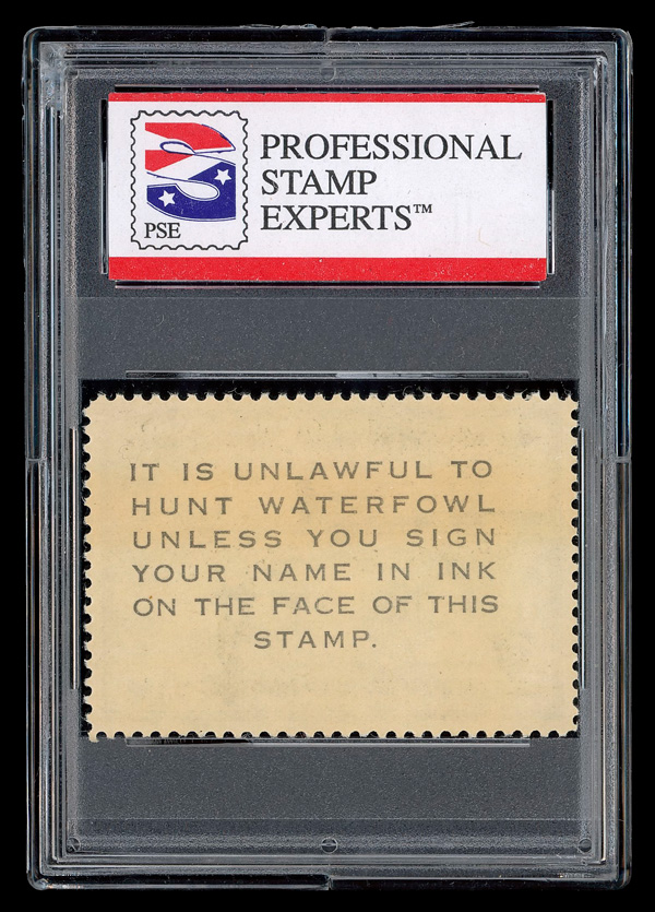 6833 nh RW7 imageFederal Duck Stamp, 1940, $1 Black Mallards (Scott RW7), o.g., never hinged, Very Fine to Extremely Fine, with 2008 P.S.E. certificate graded VF-XF 85.