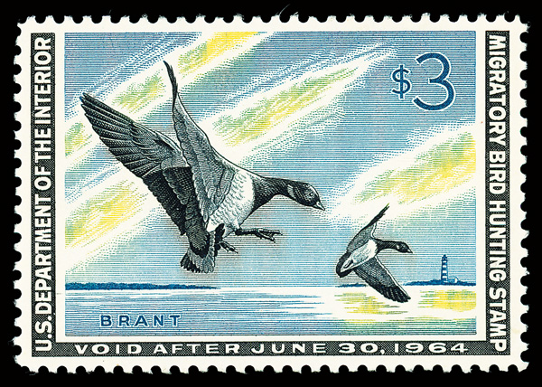 6850 nh RW30 imageFederal Duck Stamp, 1963, $3 Brants (Scott RW30), o.g., never hinged, Superb, with 2017 P.S.E. certificate graded SUP 98.