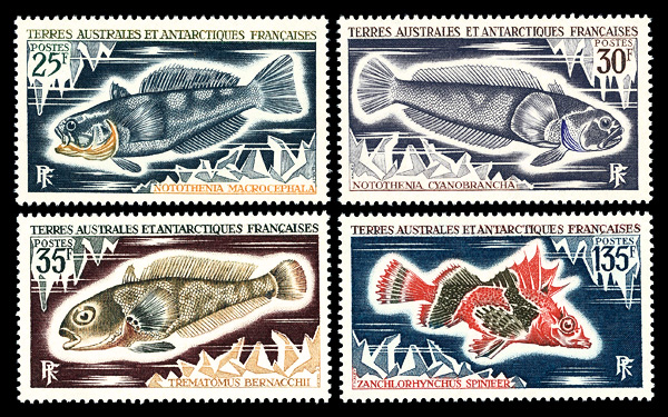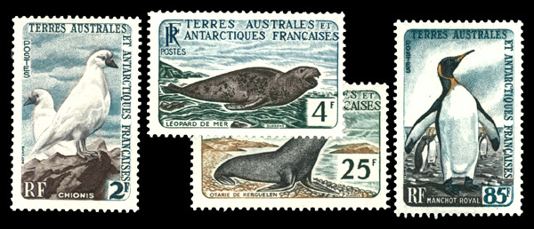 9742 nh 16-19 image1960, Antarctic Fauna, 2fr to 85fr complete (Scott 16-19), complete set of single, o.g., never hinged, Fine to Very Fine.