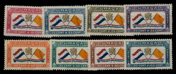 9728 og CB1-CB8 image1941, Flag of the Netherlands and House of Orange, "Netherlands Shall Rise Again" (Scott CB1-CB8), complete set of singles, o.g., lightly hinged, Fine to Very Fine.