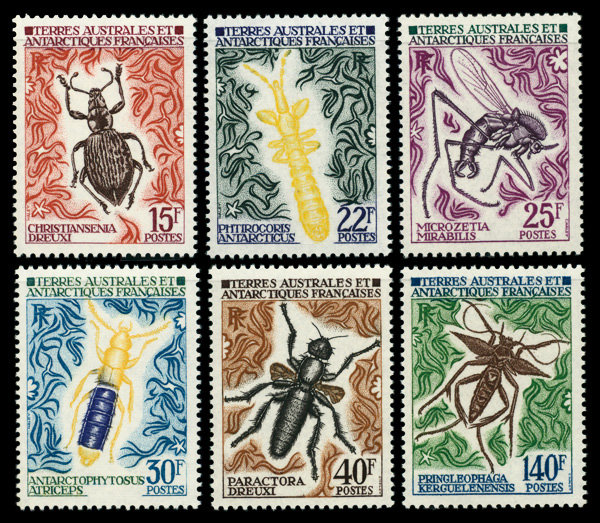 9750 og 46-51 image1972, 15fr-140fr Insects, complete (Scott 46-51), set of 6, o.g., lightly hinged, Extremely Fine.