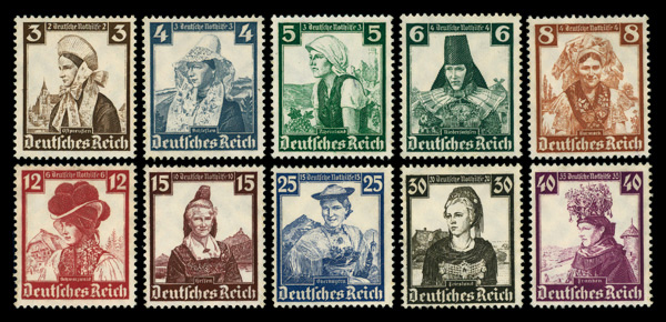 9760 nh B69-B78 image1935 Costumes complete (Scott B69-B78), set of 10, o.g., never hinged, Very Fine.