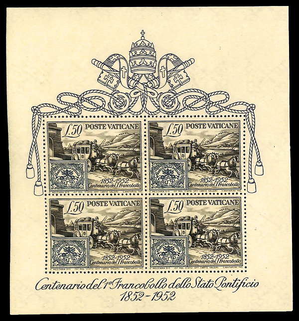 9955 nh 155a image1952 Stamp Centenary souvenir sheet (Scott 155a), o.g., never hinged, Very Fine.