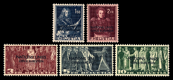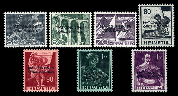 9952 og O 7O1-7O20 image1948-50, 5c-10fr United Nations European Office overprint, complete (Scott 7O1-7O20), set of 20, o.g., lightly hinged, Very Fine to Extremely Fine.