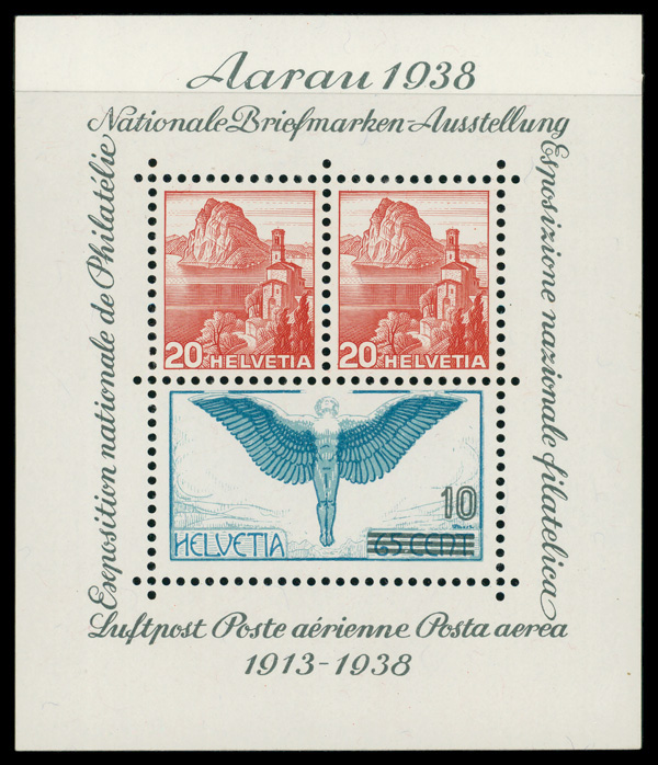 9942 nh 242 image1938, Aarau souvenir sheet (Scott 242), o.g., never hinged (pencil mark on gum), Very Fine.