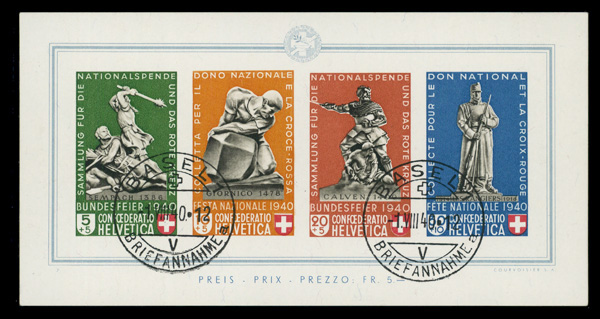 9949 O B105 image1940, Pro Patria souvenir sheet (Scott B105), Extremely Fine.