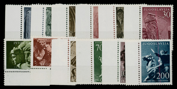 9956 nh 435-446 image1956, Yugoslav Art complete (Scott 435-446), complete set of marginal singles, o.g., never hinged, Fine to Very Fine.