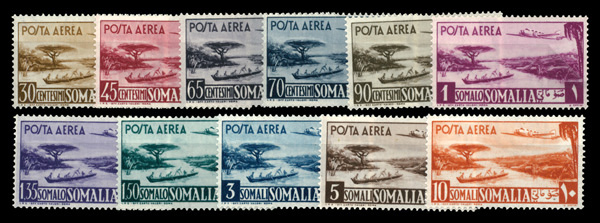 9921 og C17-C27 image1950-1951, Pictorials 30c yellow brown - 10s red orange complete (Scott C17-C27), complete set of singles, o.g., hinged, Fine to Very Fine.
