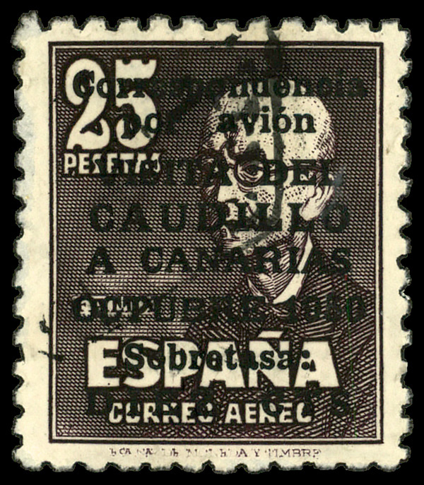 9925 O CB18 imageAirmail, 1951, 25p+10c Franco's Visit to the Canary Islands, second printing (with control number) (Scott CB18), single, Fine to Very Fine.