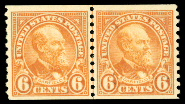 9187 og 723 image1932, 6¢ Garfield, rotary press printing, horizontal coil (Scott 723), joint line pair, o.g., hinged, Very Fine.